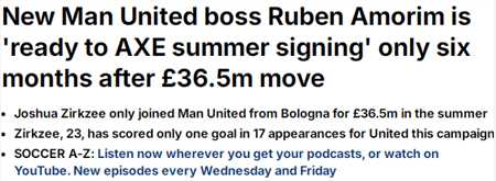 曼联新任主帅阿莫林已经上任,他也在卡灵顿训练基地见到了部分曼联球员。虽然阿莫林与齐尔克泽还未见面,但葡萄牙主帅已经对后者的能力做出了评估,他认为齐尔克泽能力不足,并且已经要求俱乐部能够在未来签下葡萄牙体育前锋哲凯赖什。如果真是这样,齐尔克齐可能会成为俱乐部的第三中锋,并为出场时间而挣扎。