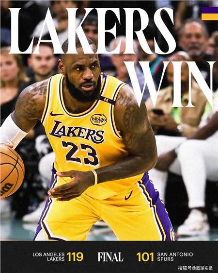 昨天结束的常规赛,湖人客场119-101战胜马刺。