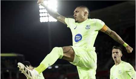在西甲联赛第19轮中,巴塞罗那在客场以5-1大比分战胜马略卡。此役中,拉菲尼亚独中两元,表现出色。根据《每日体育报》的数据统计,这位27岁的巴西边锋在本赛季每110分钟便能攻入一球,迎来了他职业生涯中最为闪耀的一个赛季。