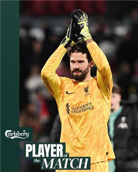 最终经过球迷评选,阿利松当选利物浦队内本场比赛最佳球员。