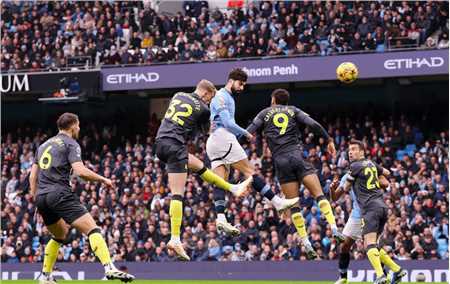 哈兰德操刀主罚,没能打出角球,皮克福德奋力将球扑出,虽然哈兰德头球补射破门,但已经是越位在先。