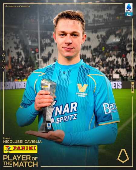 官方消息,尼科卢西-卡维利亚当选尤文图斯对阵威尼斯一役全场最佳。