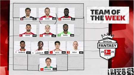 德甲官方今日列出了第三轮最佳阵容,凯恩、马尔穆什入选,勒沃库森、莱比锡和柏林联合均有两名球员入选。