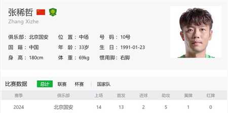 虽然张稀哲是四大豪门里,唯一的国产10号,但是作用跟数据来看,他也是四个10里面表现最差的一个,21轮下来只是打14场比赛,而出场次数最多是卡扎,在亚冠、足协杯、联赛已经出场27场,他的出场数据是张稀哲的2倍,只是比他小3岁而已。